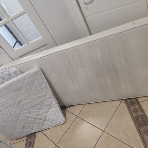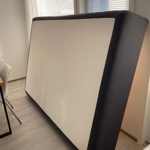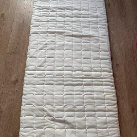 IKEA vaalea joustinpatja. Patjassa on tikattu päällinen ja sivuilla kantokahvat helpottamassa siirtelyä ja kääntämistä. Sopii käytettäväksi sängynrungon tai sälepohjan kanssa. Väri vaalea, toisella puolella harmaa kangas. Kunto erittäin hyvä. Leveys 90cm ja pituus 200cm.