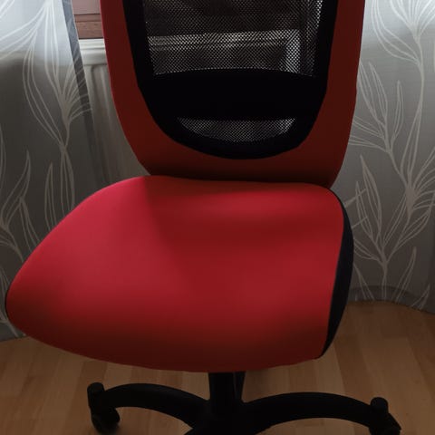 Myydään toimistotuoli. Tuolissa korkeuden säätö. Kankaassa pieni reikä, näkyy lisäkuvassa. Muuten siisti.