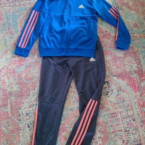 Verryttelyhousut 152 cm. Reilusti haaleita hiekkatahroja, muutama selvemmin erottuva ja toisessa lahkeessa takana pientä mustaa tahraa.