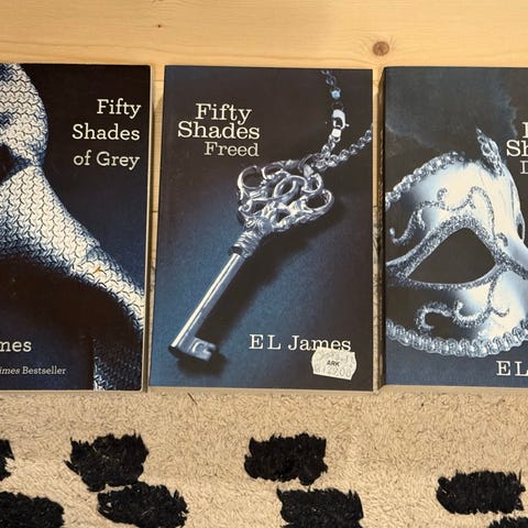 E L James Fifty Shades Trilogy -kirjasarja englanniksi. Paketti sisältää kolme nidottua romaania: Fifty Shades of Grey, Fifty Shades Darker ja Fifty Shades Freed. Kirjat ovat englanninkielisiä ja kuuluvat samaan trilogiaan.