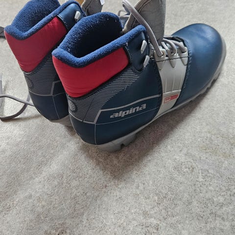 Alpina hiihtomonot. Monot ovat mustat, joissa on valkoisia ja punaisia yksityiskohtia. Kengissä on vetoketjukiinnitys ja nauhat sisäpuolella, sekä nilkkaa tukeva varsi. Soveltuvat maastohiihtoon talvikäyttöön.