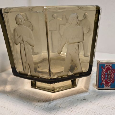 Kuvien mukainen Riihimäen Lasi 1941. Korkeus n. 15,5 cm ja korkeus n. 19 cm väri lila.