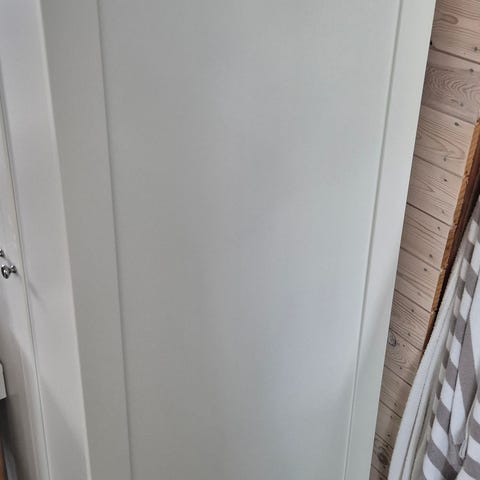 Askon vanha hylly (kaapin ovia ei ole tallessa). Ollut vaatehyllynä löytyy naarmuja sekä kulumaa. Kissatalous.