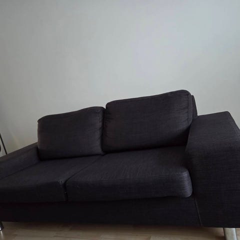 sohvaan on kaksi niskatyynyä jotka voi kätevästi ottaa pois