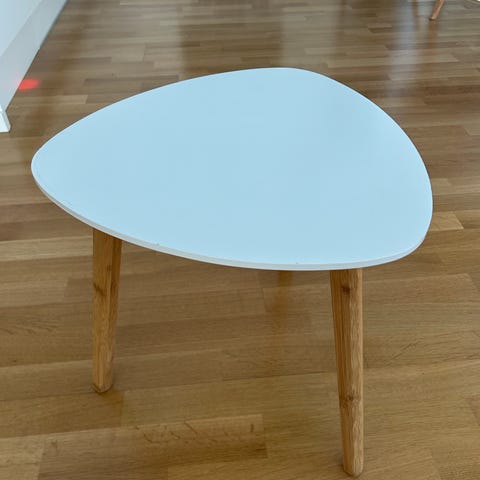 Myydään alunperin jyskistä ostettu pieni pöytä. Päällystetty itse valkoiseksi. Mustat jalat. Hyvässä kunnossa. Mitat kuvissa.