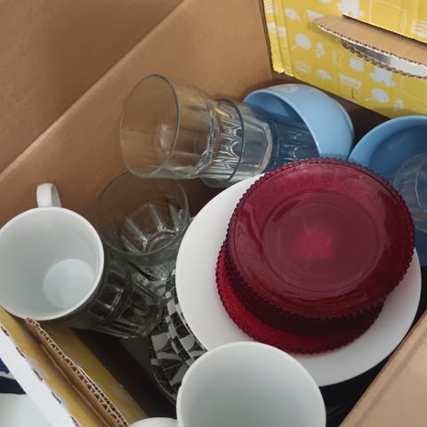 Annetaan 4kpl lautasia ja mukikori setti
