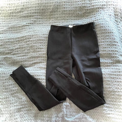 Suorat, täyspitkät mutta rento istuvuus. Vyötäröllä on kuminauha.