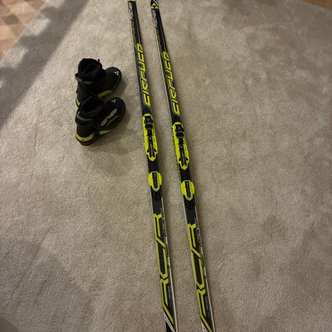Pari käyttökertaa nähneet Fischerin 157cm pitkät luistelusukset + 38 Alpina luistelumonot (vaihtoehtoisesti Fischerin 39 luistelumonot) + Vega sauvat joko 140cm tai 150cm pituudella.