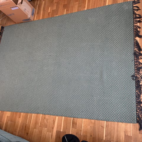 IKEA Vonsbäk matto 133x195cm. Käytön jälkiä on, muutamia tahroja yms mitä en ole koittanut edes pestä. Ehjä kuitenkin on. Reunat nousee ylöspäin mut esim mattoteipillä pysyy varmasti hyvin alhaalla. Vain nouto.