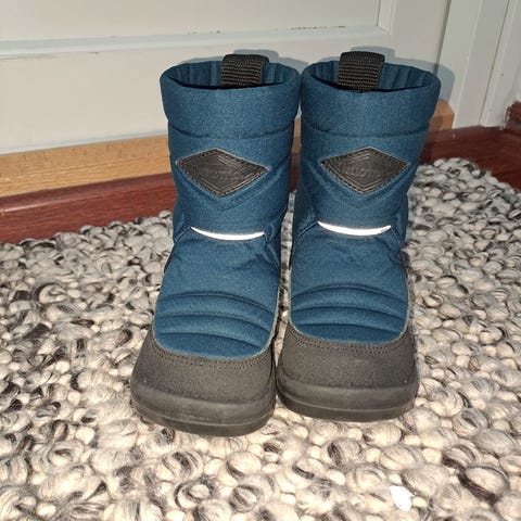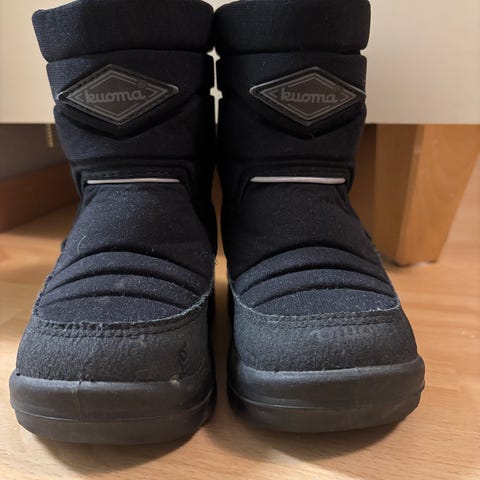 Kuoma putkivarsi -talvikengät villavuorella. Koko 22. Hyvä käytetty kunto, punaisesaa päällyskankaassa paikoitellen haalistumaa.
