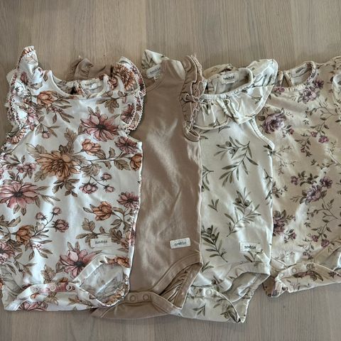 Newbie body tytöille, koko 80. Beige puuvillainen body, jossa hienovarainen kuviollinen kangas. Pitkät hihat ja napitus selässä helpottavat pukemista. Haaraosassa nepparikiinnitys vaipanvaihtoa varten. Materiaali 100 % puuvillaa. Pieni reikä merkkilapun vieressä, kts kuva.
