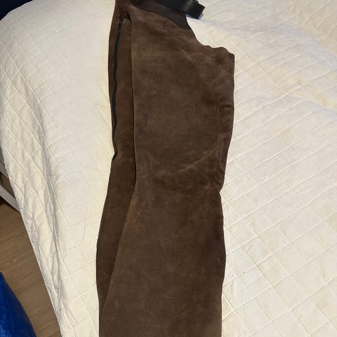 M-koon mokkanahkaiset kokochapsit. Käytetty muutamia kertoja, vielä hieman jäykähköt.