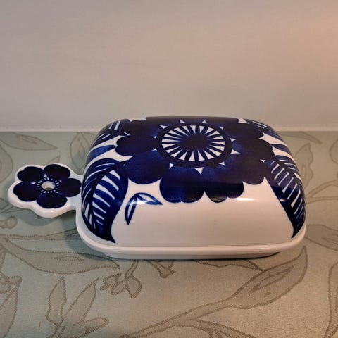 Tyyli: Käsinmaalattu koriste koboltinsinisellä kuvioinnilla.