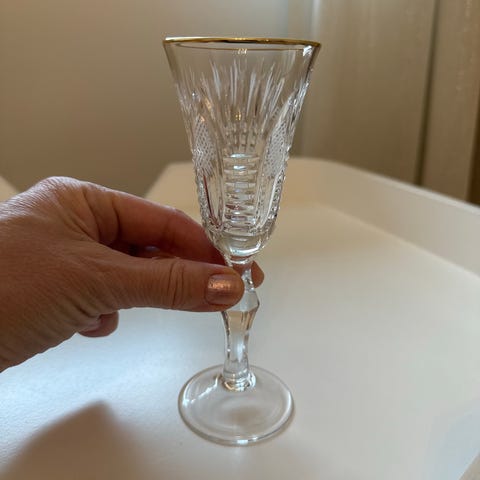 6kpl jalallisia kristallilaseja, kokoluokkaa viinilasi. Myydään kaikki kerralla, ilmoitettu hinta yhteishinta.