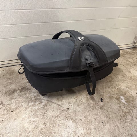 Ollut tallissa säilytyksessä ja saanut valkoisen maalipölyn laukun pintaan. Muuten siisti.