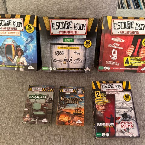 Kaksi pakohuonepeliä joissa toisessa 2 peliä eli 3 pelattavaa tarinaa. Yhteistä tekemistä esimerkiksi talvilomalle! Pelit on pelattu kerran läpi ja laitettu siististi omiin laatikoihin.