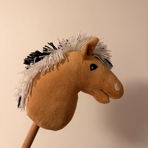 Itsetehty keppihevonen. Ei mitään käytönjälkiä. Siitä seuraavalle hyvä keppihevonen leikkeihin tai keräilyyn!