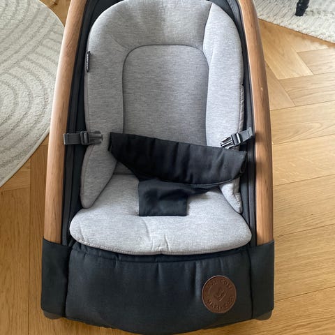 Tyylikäs ja mukava sitteri erillisellä pehmusteella ja irrotettavilla päällisillä. Uutena ostettu ja yhdessä lapsella ollut noin 1 vuoden käytössä. Päällyset pesty uutta käyttäjää varten :) Mukana lelukaari, voi säätää kolmeen eri kallistusasentoon ja menee täysin kasaan, joten helppo kuljettaa mukanakin.
