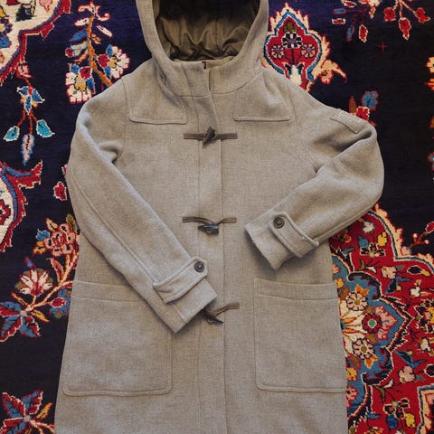 Super ihana ja lämmin villakangastakki! Vetoketju uusi. Pesulappu kulunut, mutta muuten todella hyvässä kunnossa. Koko naisten S. Lähikuvissa todellinen väri näkyy parhaiten.