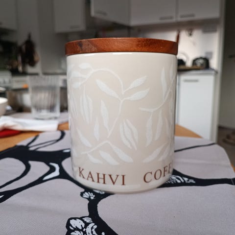 Pentikin keraaminen purkki puisella kannella