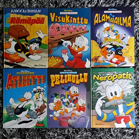 Aku Ankka Ankkalinnan alamaailma ja Aku Ankka Ekstra 21–26 kovakantiset sarjakuvakirjat.