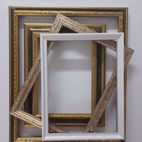 Neljä kehystä kultaisella ja hopeisella viimeistelyllä.Suuri hopeinen kehys, sisämitat 50,5 x 60,5 cm.Keskikokoiset hopeakehykset, sisämitat 40,5 × 50,5 cm.Pieni kehys, vihreän kullan värinen, sisämitat 30,5 × 40,5 cm.Kunto on hyvä, ne lähetetään ammattimaisesti.