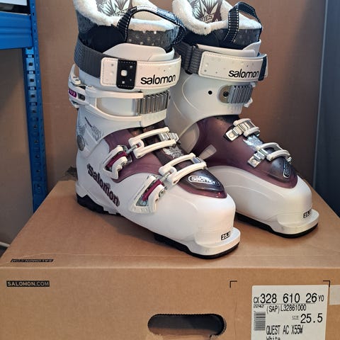 Salomon Ghost FS 80 laskettelumonot. Kengän koko on 25.5 mondo. Väritys vihreä, musta ja oranssi. Monossa on useita solkia ja kumipohja, joka parantaa pitoa kävellessä. Sopivat rinnelaskuun ja yleiseen laskettelukäyttöön.