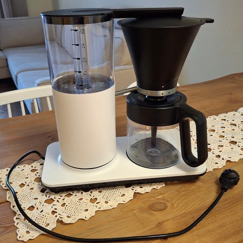 Käytetty mutta hyväkuntoinen kahvinkeitin, joka jauhaa myös pavut. Haku Kaakkurista.