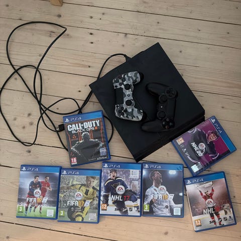 Sony Playstation 4 pelikonsoli DualShock-ohjaimella ja peleillä