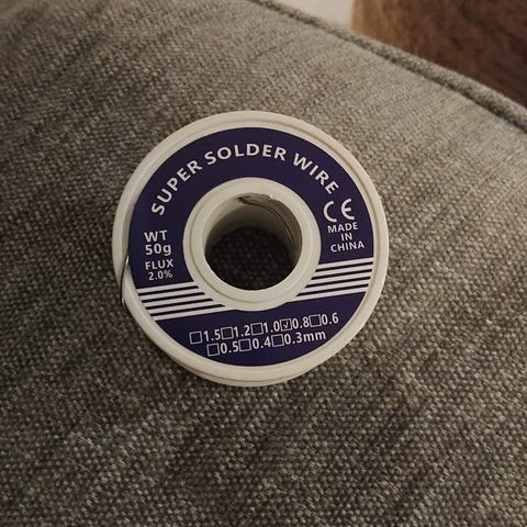 Myynnissä on lyijytön juotustina 0.8mm 50g. 1kpl. - 6€, 2kpl. - 10€