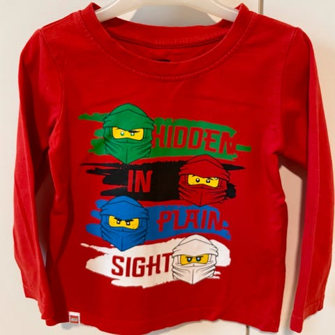 Myydään hyväkuntoinen, ehjä Lego Ninjago pitkähihainen paita pojille. Koko 98 cm (noin 3-vuotiaalle). Vihreäsävyinen puuvillapaita, jossa edessä suuri Ninjago-hahmokuvio ja NINJAGO-teksti.