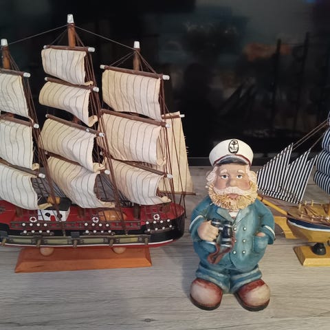 Mukava setti, jossa on erilaisia meriaiheisia artikkeleita.Arkku, jossa on sekstantti (kopio). Arkku on koristeltu kauniilla messinkikoristeilla, joiden joukossa on ankkuri.Seuraavaksi pieni laatikko, jossa on kompassi, vihelin, suurennuslasi ja alkuperäinen nappikiinnitys.Laatikoiden koko on 10 x 22 x 22 cm ja 4,5 x 14 x 14 cm.Kokonaispaino 2,6 kg.Valokuvien ottaminen on osa kuvausta. Laatikot pakataan erittäin huolellisesti, lähetetään rekisteröitynä ja vakuutettuna sekä varustetaan seurantalukolla.Katso myös muita eräni ja säästä mahdollisesti toimituskuluissa.Ei lähetetä Yhdysvaltoihin.