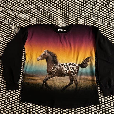 Pitkähihainen Molon paita 152 cm, sanoisin että vähän pienempi koko. Hyvä kunto. Perhosen siivet kuosi.