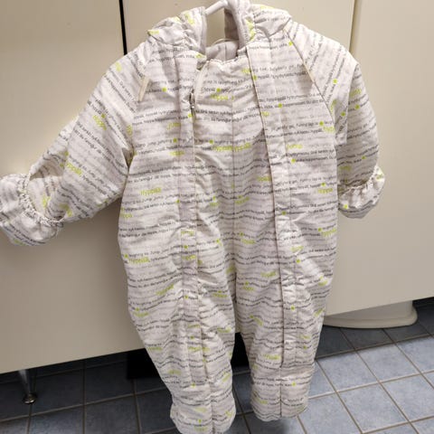 Vauvalle paljon käytetty toppahaalari 68/74 (juuri pesty, mutta pinttymää hihansuissa). Siistit toppatumput, -töppöset ja -myssy. Merinovillahaalari 68/74 (vähän pinttymää kauluksessa vetskarin suojan kohdalla ja nyppyä, mutta siisti ja lämmin). Merinomyssy hyväkuntoinen.