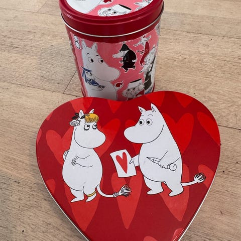 Muumi peltirasiat. Sydän muumipeikko leveys 9cm ja korkeus 5cm