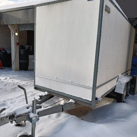 Täysin toimiva peräkärry, yksi laita hieman vääntynyt mutta ei vaikuta mihinkään ja pressukaari menee paikalleen hyvin.