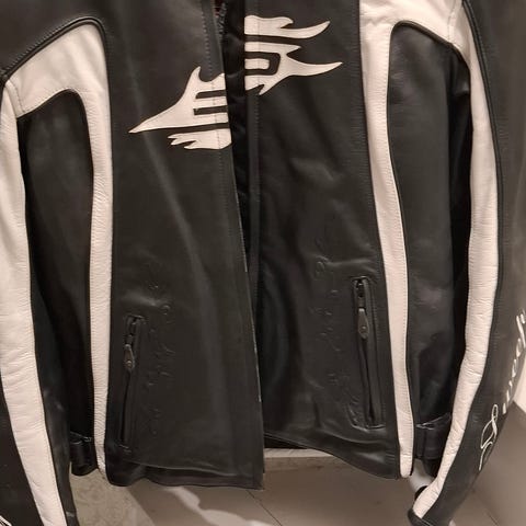 Kuin uusi naisellinen malli,jossa kyynärsuojat sekä selkäsuoja,irroitettava sisätakki. Koko L mutta pientä kokoa.