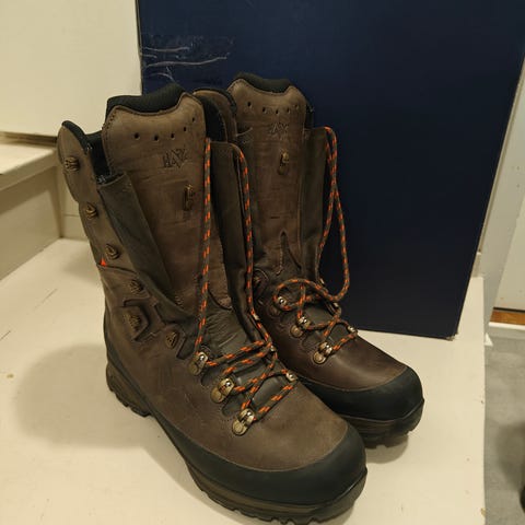 Irish Setter Elk Tracker XP miesten metsästyskengät. Kengät on suunniteltu metsästyskäyttöön ja vaativiin olosuhteisiin. Koko EU 44 (UK 10, US 11, CM 29). Varren yläosa on ruskeaa materiaalia ja alaosa tummempaa, kumimaista suojaavaa materiaalia. Nauhakiinnitys mahdollistaa säädettävän istuvuuden. Pohja on karkea ja kuvioitu, mikä parantaa pitoa epätasaisessa maastossa. Kenkä on tarkoitettu miehille ja soveltuu erityisesti metsästykseen ja muuhun ulkoiluun maastossa.