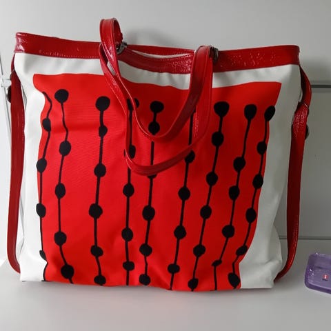 Erittäin siistikuntoinen, kerran käytetty Marimekon Aina Adam matkalaukku/ weekender. Laukku on paksua ja ryhdikästä kangasta. Laukun kahvat, olkahihna sekä yksityiskohdat ovat nahkaa. Vetoketjusuljenta sekä sisällä taskuja. Laukun pituus noin 50cm ja korkeus noin 25cm. Laukku säilytetty suojapussissa. Lemmikitön ja hajuton talous.
