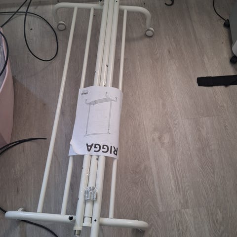 Puinen vaaterekki, kevyt. Ei mikään maailman tukevin.