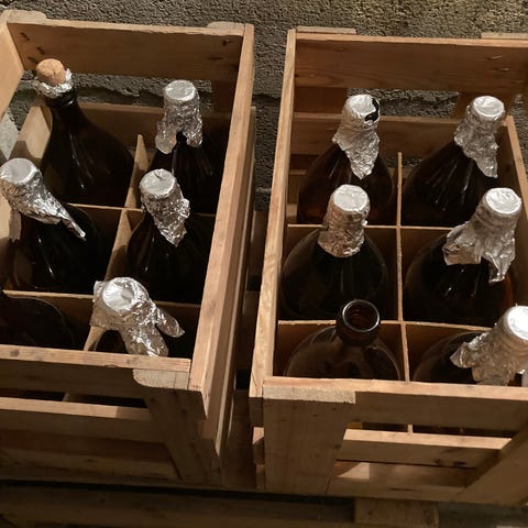 Puulaatikko 6-lokeroinen, pulloineen, 2 laatikkoa, yhteishinta