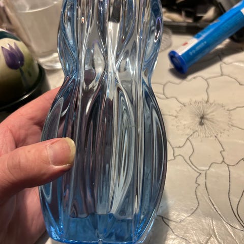 Jiri Brabecin suunnittelema lasimaljakko, jonka korkeus on noin 19,5 cm. Valmistettu Sklo union Rosicen lasitehtaalla Tšekkoslovakissa.