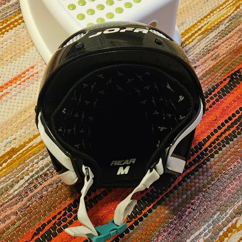 Harmaa Jofa merkkinen lasten säädettävä kypärä luisteluun tai jääkiekkoon.