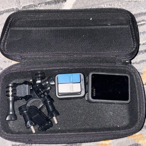 1. GoPro 9 camera + 2 batteries ( one battery extra holds 60-70% charge, the other 100%)