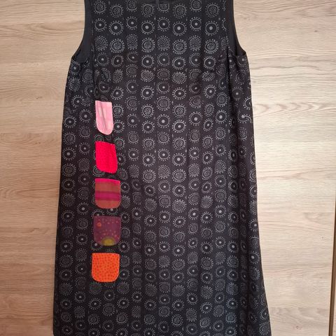 Vähänpidetty, koko 40 eli kai-kai 50cm ja olka-helma 95cm. Kirkkaina säilyneet värit.