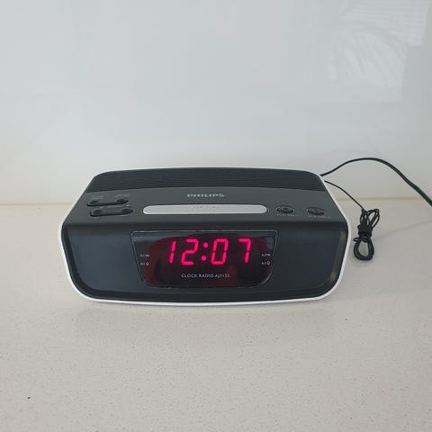 Philips herätyskello radio musta. Laitteessa on sisäänrakennettu FM/AM-radiovastaanotin ja digitaalinen kellonäyttö. Päällä sijaitsevat painikkeet mahdollistavat radion ja herätystoimintojen käytön, kuten herätyksen päälle/pois, torkkutoiminnon ja äänenvoimakkuuden säädön. Takana on kaiutinritilä sekä virta- ja virityssäätimet. Pohjassa on paristokotelo varavirtakäyttöä varten. Mukana tulee verkkolaite, jolla laite kytketään sähköverkkoon. Soveltuu yöpöydälle tai muuhun sisäkäyttöön ajan ja radion kuunteluun.