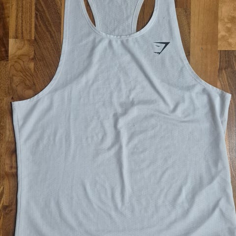 Gymshark miesten treenipaita, koko M. Väri valkoinen. Materiaali polyesteri. Lyhythihainen, vartalonmyötäinen malli, jossa pieni Gymshark-logo edessä. Soveltuu erityisesti kuntosaliharjoitteluun ja muuhun urheiluun.