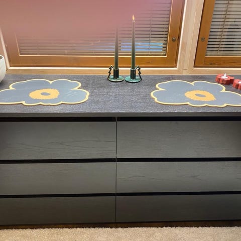 Kaatunut vettä vähän ensimmäiseen laatikkoon, jonka imenyt itseensä ja näkyy hieman laatikon ulkopuolella ja sisäpuolella.