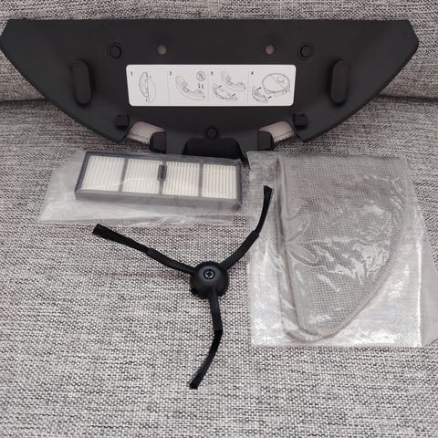 Pakkaus sisältää 2 sivuharjaa, 2 hankaavaa moppiliinaa, yleisharja ja HEPA-suodatin.