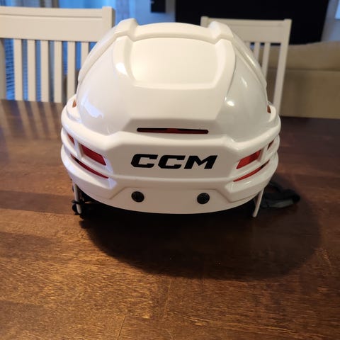 CCM Tacks 720 jääkiekkokypärä ristikolla. Väri valkoinen ja koko S. Kypärässä on musta ristikko sekä sisäpuolella pehmusteet ja säätöhihnat istuvuuden säätämiseen.